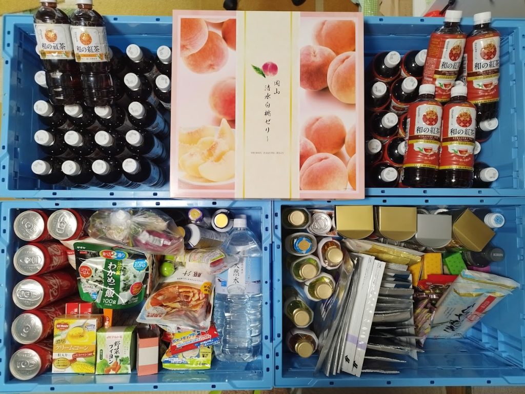 価格高騰のなかお米や、飲料やのりなど多くの食品や生活用品などもいただき、支援を必要とする方へお渡しさせていただきます。