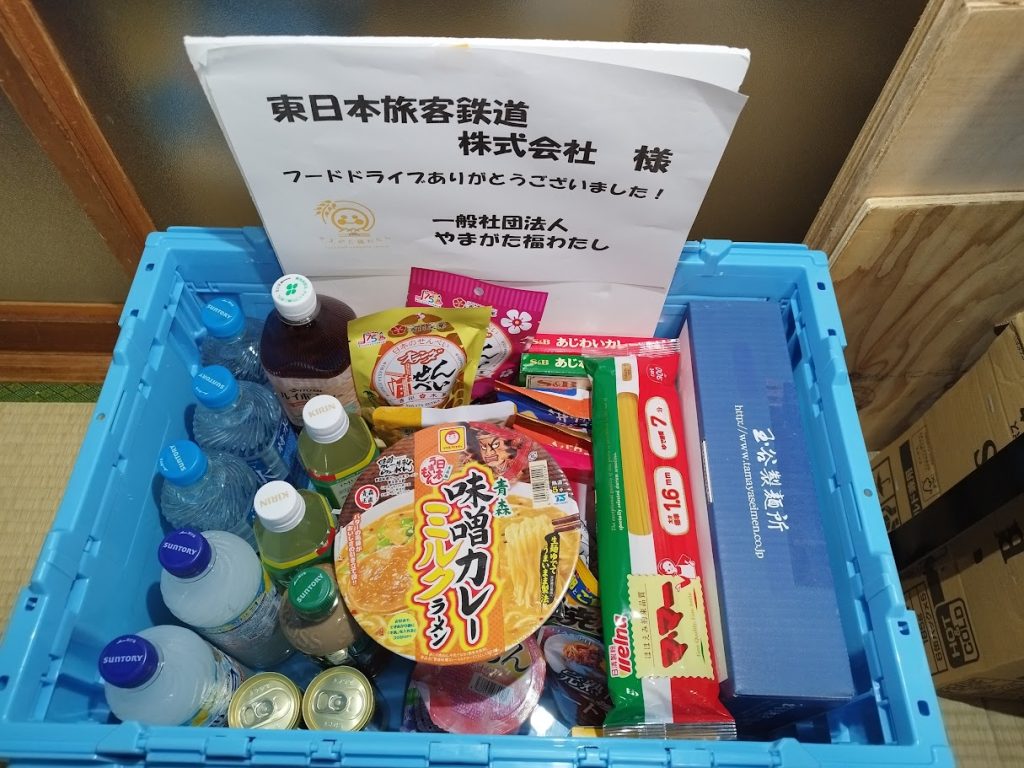 今回のフードドライブは、JR東日本山形統括センター様にご協力いただき、12月12日(金)15:00~19:00と13日(土)10:00~15:00の2日間、山形駅東西自由通路でフードドライブを実施して集まったものです。